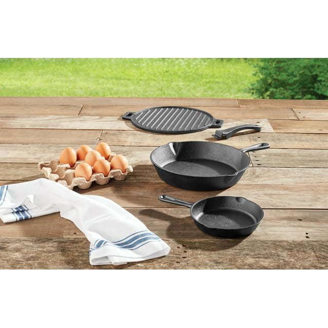 Home > 4-Piece Cast Iron Skillet Set with Handles and Griddle, Pre-Seasoned, 6", 10.5", 11"