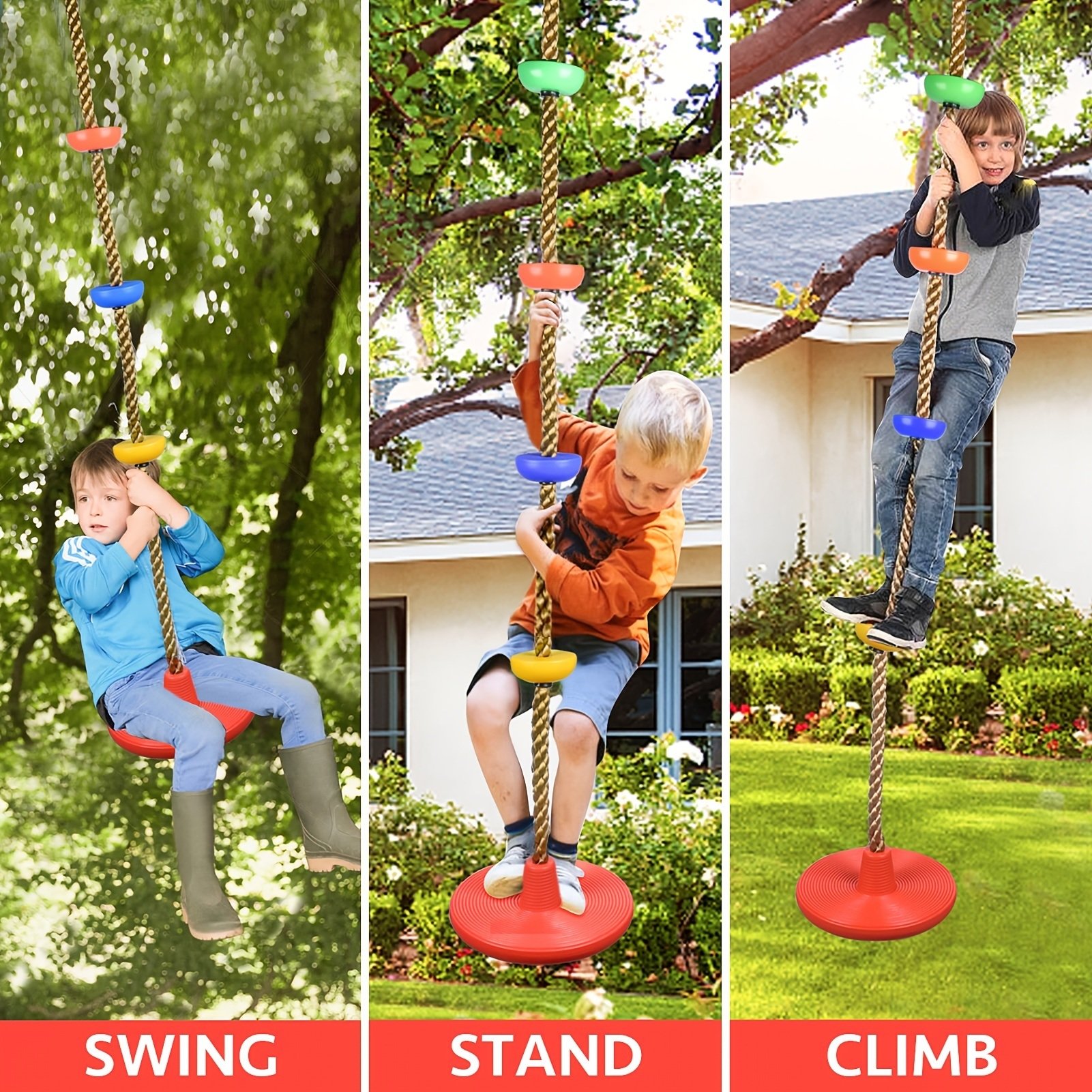 Home > Climbing Rope Tree Swing With Climbing Rope And Platforms Disc Swing Seat With Hanging Strap And Snap Hook For Kids Outdoor Playground Set Accessories