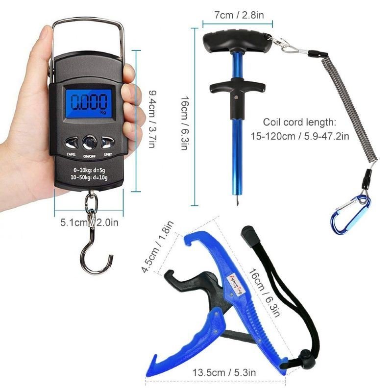 1.The set with 1 Digital Scale,1 Fish Gripper,1 Hook Remover and 1 Fishing Lanyard. Good tools for your convenient fishing.