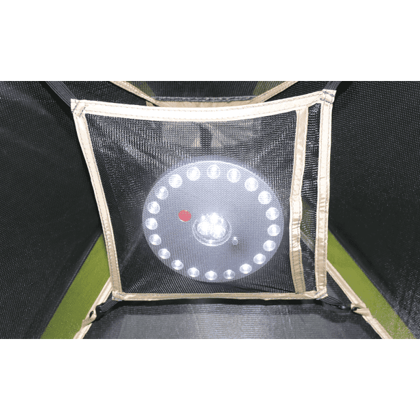 Includes gear loft with pocket for LED light (included)(batteries not included for the light)Remote included for LED Light(battery included in the remote)Other storage options include an integrated mesh pocket, hanging two-tier shelf, and webbing for hanging items