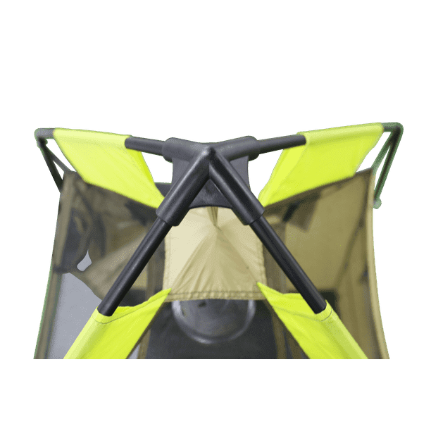 Whether you're washing off the grit or switching pants, the Hazel Creek Lighted Shower Tent completes your campsite bathing and changing needs. The durable steel frame and hanging hook can hold 50 pounds of water, plus there's a PE floor with mesh drainage ports for your washing needs. Assembly is easy with all poles connecting to one hub. A gear loft includes a pocket for an included LED light; and for airflow, the roof is a mesh panel and there's a zippered rear window. Storage is simple using the mesh pocket, hanging two-tier shelf, and webbing hoops so you can hang items. An integrated mud mat gives you a place to keep your clothes and belongings out of the dirt and mud. 1 Person, 1 Room, Green