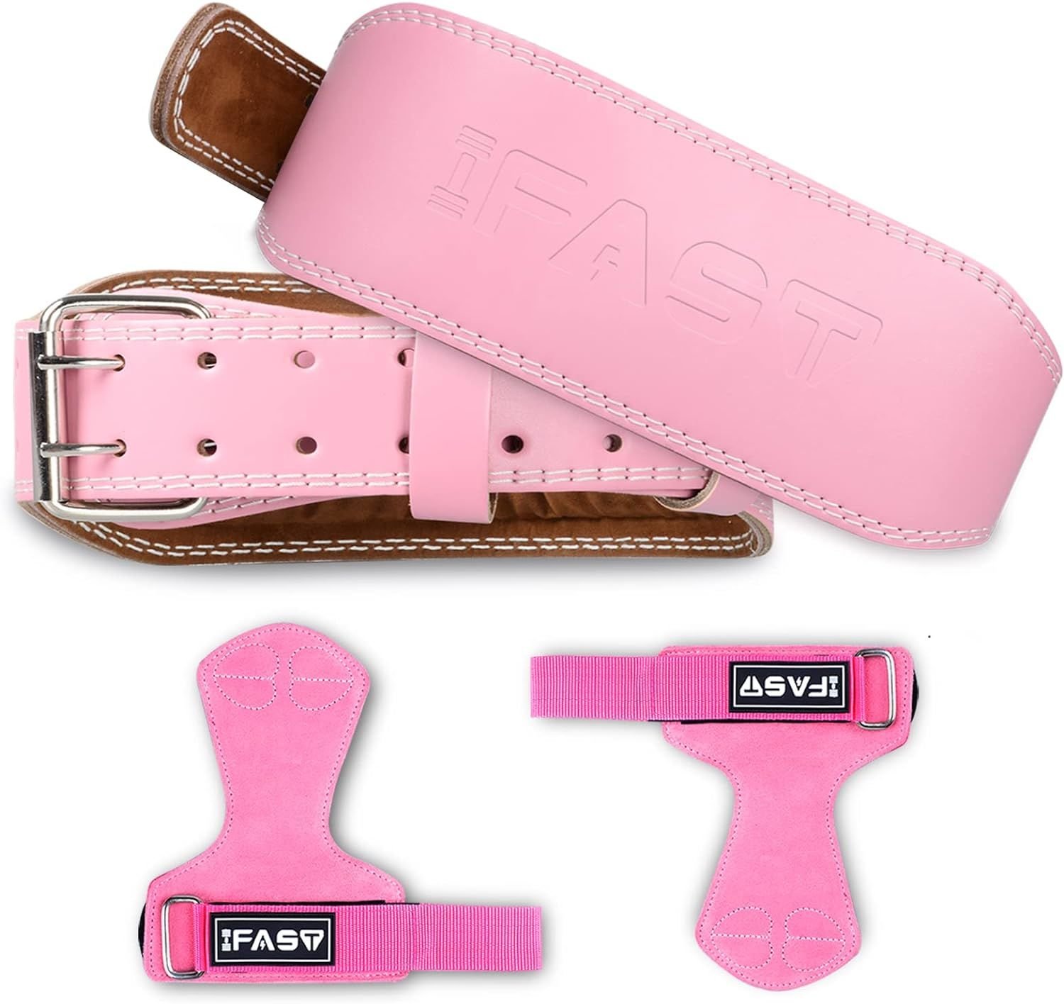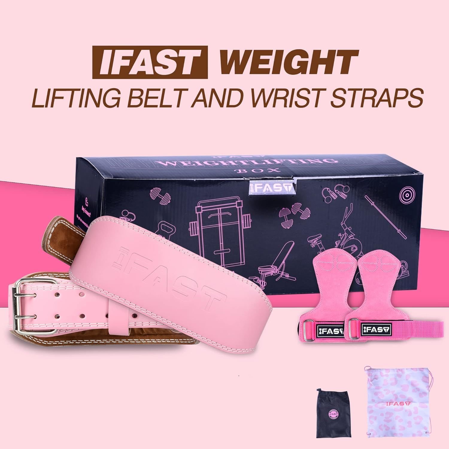 IFAST Weight Lifting Belt and Wrist Straps, Weightlifting Belt for Women with 4 inch Padded Lumbar Support Belt for Weightlifting, Deadlift, Strength