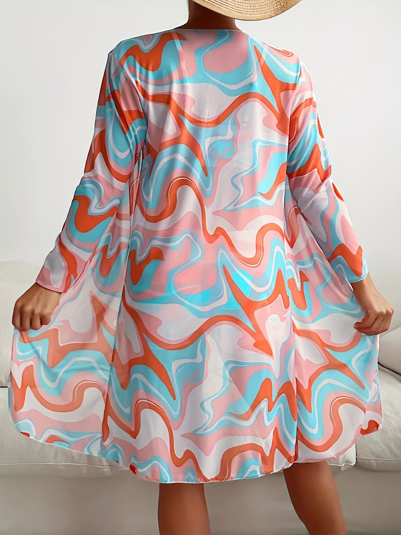 3-Pieces V Neck Bikini Sets, Drawstring Tie Front Random Print Boxer Short Bottom With Cover Up Shirt Bathing Suit, Women's Swimwear & Clothing