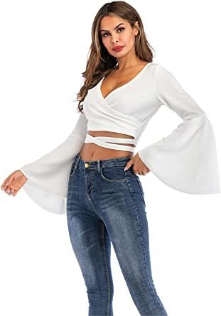 Women's Sexy Tie Up Crop Top Ladies Flared Sleeve Deep V Neck Casual Basic T Shirt Women's Sexy Tie Up Crop Top Ladies Flared Sleeve Deep V Neck Casual Basic T Shirt Women's Sexy Tie Up Crop Top Ladies Flared Sleeve Deep V Neck Casual Basic T Shirt Women's Sexy Tie Up Crop Top Ladies Flared Sleeve Deep V Neck Casual Basic T Shirt