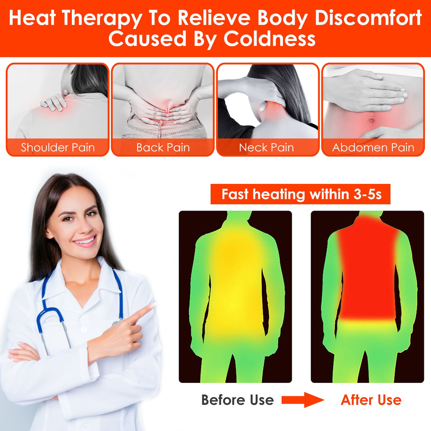 *Rapid Warming*:Adopting reliable far infrared carbon fiber heating element; this vest will start heating quickly in 3-5s after powered on. Take the edge off cold and make your whole body warm up in no time.