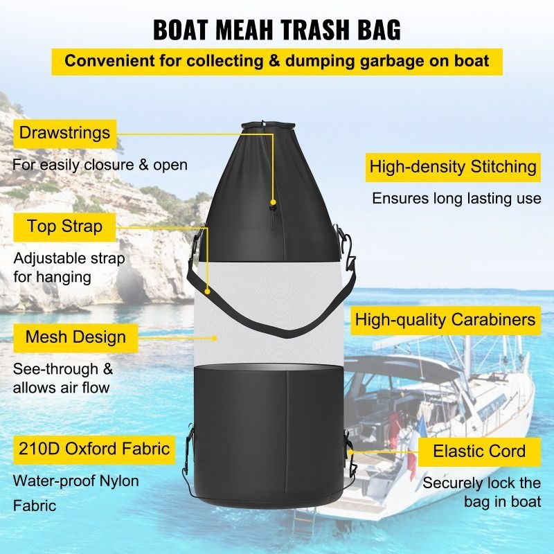 2.We considerately provide a 25.6 x 10.2 inches boat trash bag for your convenient use. The ample space can easily accommodate plenty of waste such as bottles, cans, etc. Although the trash bag is designed for t-top boat accessories, it is multipurpose and can be also used in camping and outdoor activities.