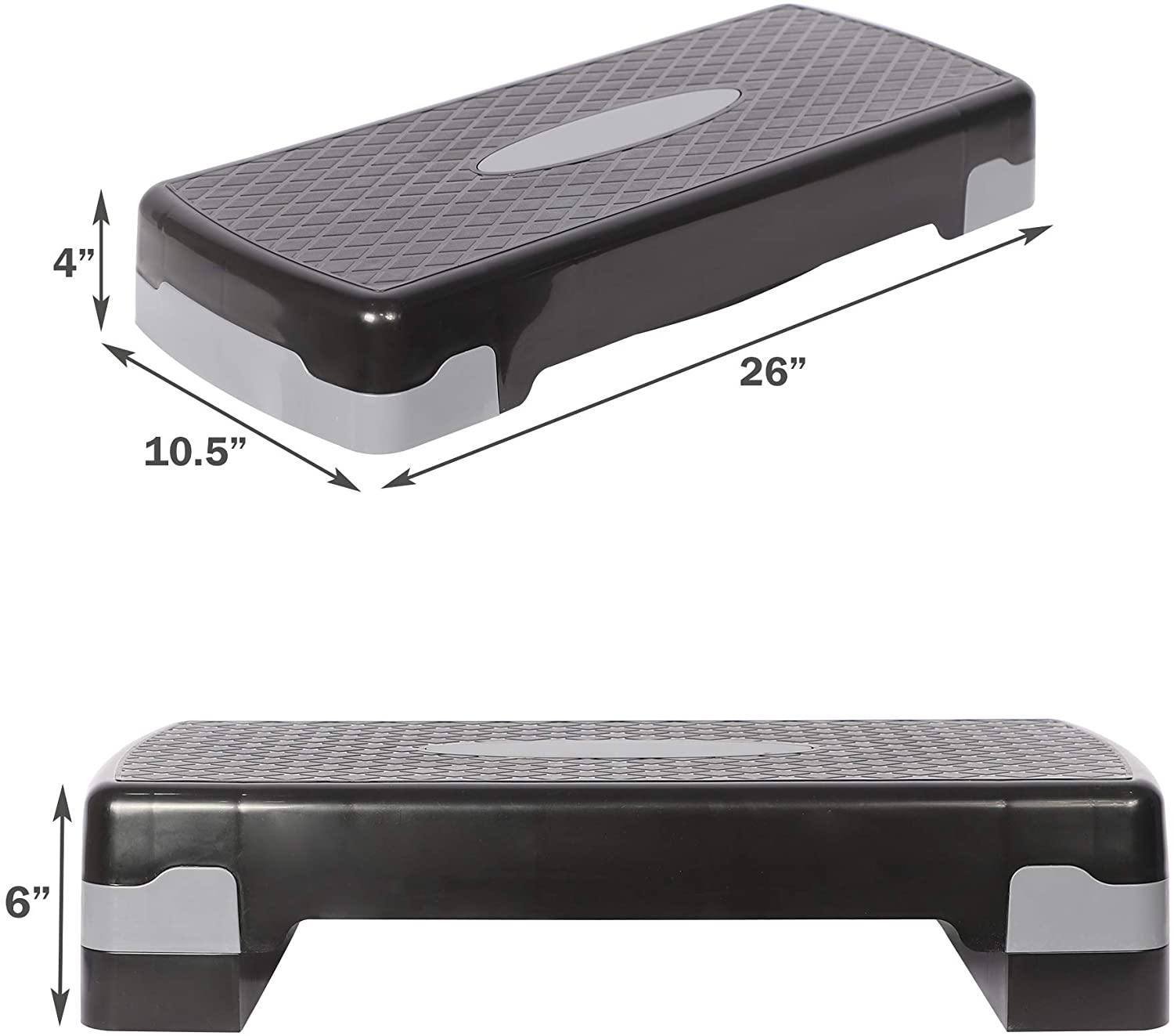Home and gym step platform nonslip top and supports up to 280 lbs.2 Levels for 4" and 6" adjustable height. Pad size is 10.5" x 26".Non-slip surface can prevent slipping; safe and useful.Multifunction step flatform assist you with various body movements and exercises.Light weight and easy carry; you can take the step tool to anywhere.